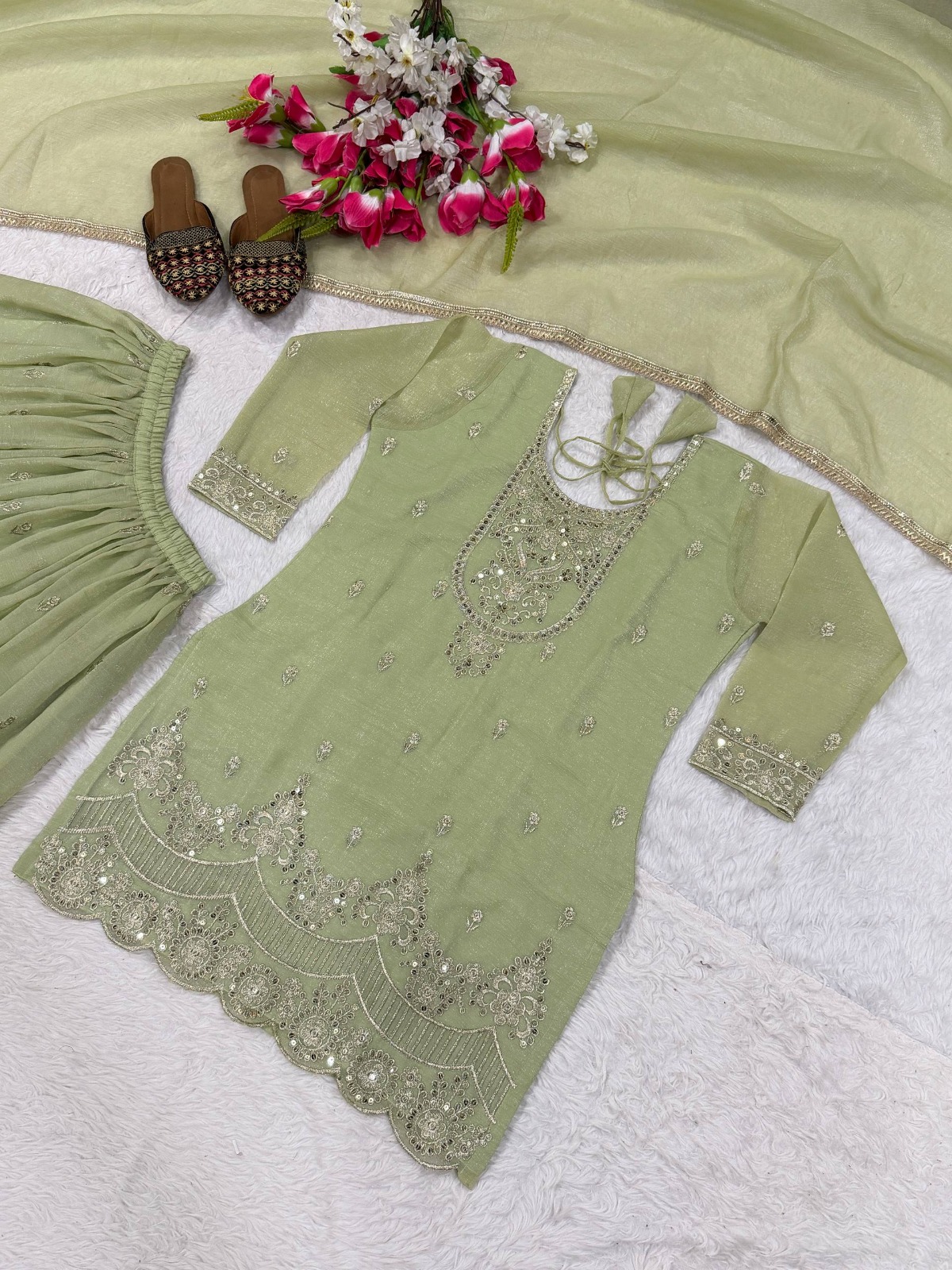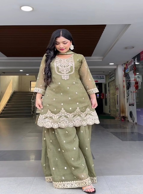 *Launching New Designer Party Wear Look Top , SHARARA PLAZO And DUPATTA*, *New Fancy Style πβ€οΈ π *Fabric Detail* π Top Fabric * : Heavy Crunchy Silk With 5mm Sequence Embroidery Work. *(Fully Sleeves )* Top Inner* : Micro Cotton Top Length* : 31-32 Inches π*SHARARA PLAZO* : Heavy Crunchy Silk With 5mm sequence Embroidery work... *(Fully Stitched SHARARA PLAZO Styles and Length is 40-41)* π*Palazzo Inner* :Micro Cotton π *Dupatta Fabric* :- Heavy Crunchy Silk *Four Side Lace Border π*Dupatta Length:* 2.30 meter π*Package Contain* :- *TOP, SHARARA PLAZO And DUPATTA* βοΈ *Weight* : 950g GST SHIPPING EXTRA π*A One Quality*π π *KING OF QUALITY* π