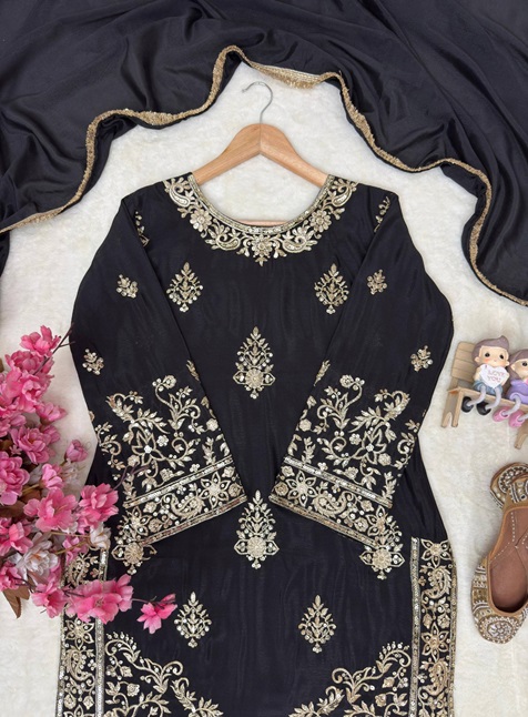 โช๏ธ FABRIC DETAILS:- ๐*KURTI:-* ๐ธ *Fabric*: Beautiful *CHINON SILK* ๐ธ*Inner*: Micro ๐ธ*Work* : Beautiful 5mm sequins & Zari embroidery work ๐ธ*Size & Length*: fully stitched Kurti length is 37 inches ๐*SHARARA:-* ๐ธ *Fabric*: Beautiful *CHINON* ๐ธ*Inner*: Micro ๐ธ*Work* : Beautiful 5mm sequins & Zari embroidery work Also Canvas Patta in Borders ๐ธ*Size & Length*: (free size) & length is 40-41 inches ๐*DUPATTA:-* ๐ธ *Fabric*: Beautiful *CHINON SILK* ๐ธ*Work* : Fancy Lace work in Border of Dupatta ๐ธ *Length* : 2 mtrs ๐ *In package:-* Fully stitched Kurti & Sharara set & Dupatta Weight:- 0.949 KG GST SHIPPING EXTRA