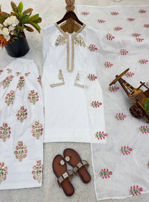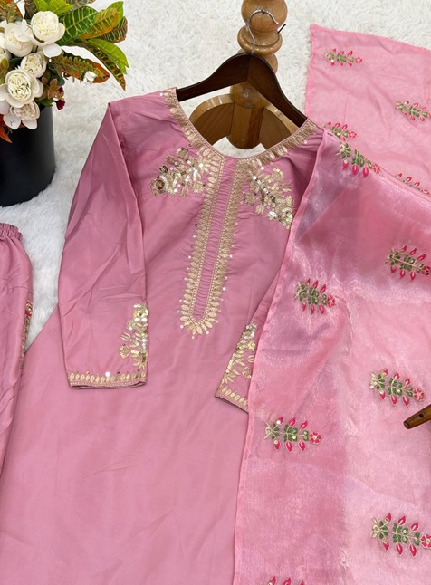 *TOP:* • *Fabric:* *Heavy crepe Silk* • *Design:* *Embroidery Thread Sequence Work* • *Sleeves:* Full Sleeve • *Inner:* Heavy Micro Cotton • *Length:* 38-39 inches 👖 *BOTTOM (Farsi Pant):* • *Fabric:* *Crepe Silk* • *Design:* *Embroidery Multi Thread Sequence Work* • *Length:* 38-39 inches 🧣 *DUPATTA:* • *Fabric:* *GMY Silk* • *Design:* *Heavy Multi Thread Embroidery Work* ⚖️ *Weight:* 1kg